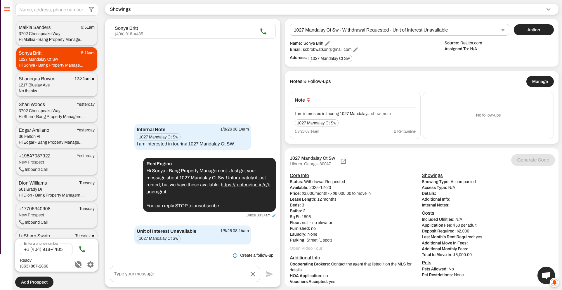 - AI that responds to texts and calls, answering prospect questions and managing showings.