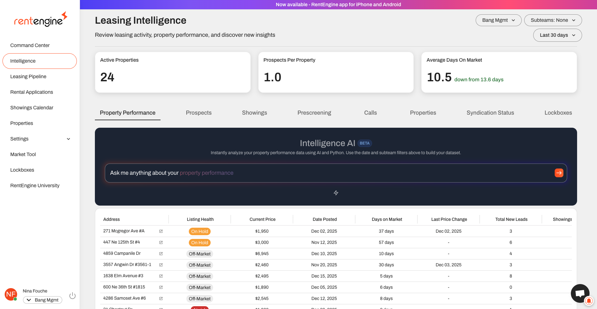 RentEngine is an AI-powered leasing system that helps property managers lease faster and convert more leads with premium marketing, smart scheduling, agent and self-guided tours, lockbox management, CRM, and custom reporting.